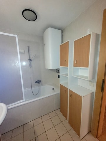 Neben einem praktischen Vorraum verfügt die Wohnung über ein Bad/WC mit Badewanne sowie eine voll ausgestattete Einbauküche, die im Kaufpreis enthalten ist.
